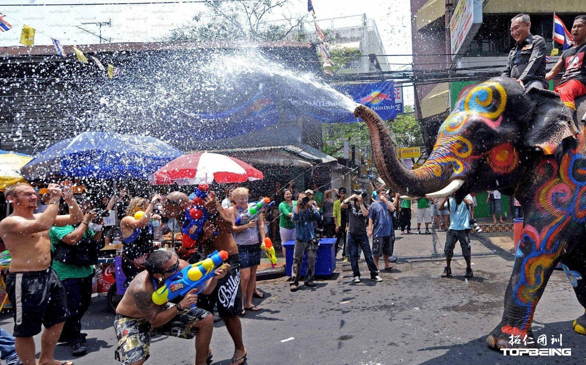 所有学员涂鸦彩色特纳卡,进入泼水节的愉悦心情,融入狂欢的活动氛围。培训师及教练工作人员均涂抹特纳卡。泼水前,进行隆重的点洒圣水祝福仪式。